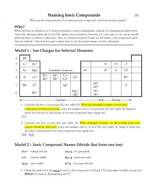 Naming ionic compounds pogil is a great way to engage your students in the classroom. This activity can be used as a review of the basics of naming ionic compounds, or it can be used as an introduction to the concept. Additionally, you can use it to reinforce the different names of the cation and anion, as well as their charges. This activity can also be used to assess your students’ understanding of the material, and to provide feedback. Furthermore, because it is an inquiry-based activity, it encourages students to ask questions and explore the concept further.